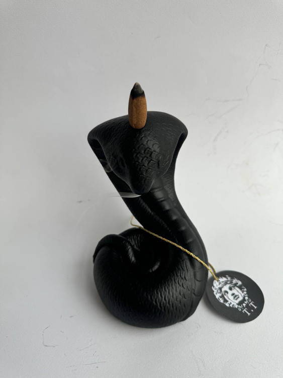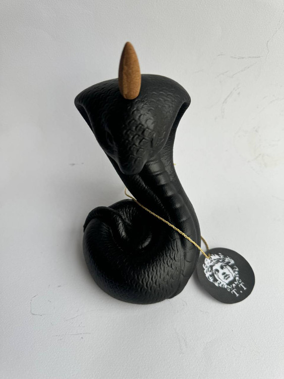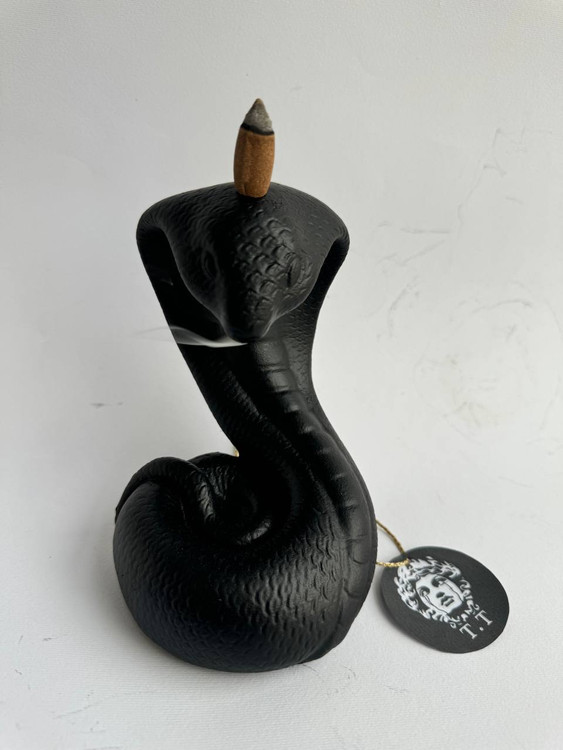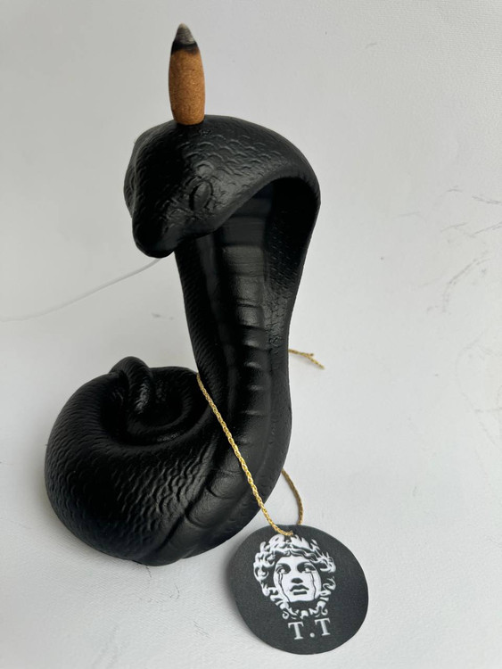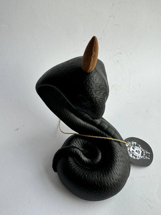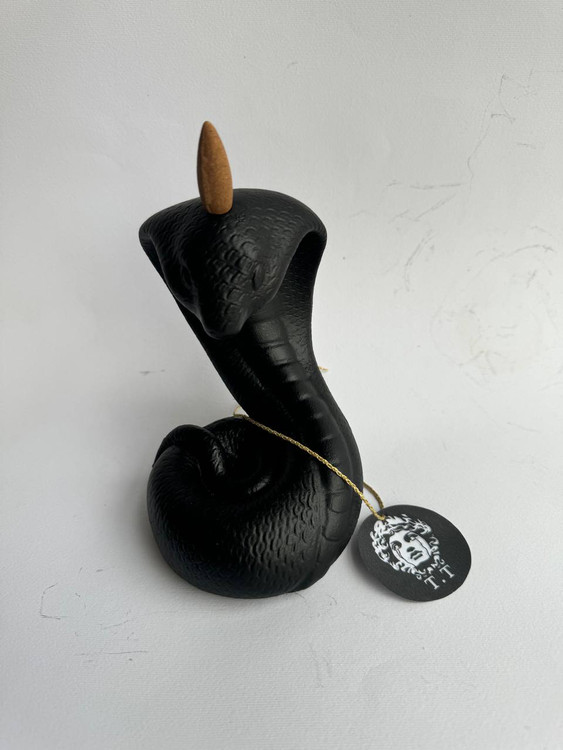 مجسمه کبری مشکی با طراحی دقیق و چشمگیر، ترکیبی خاص از هنر شرقی و سبک دکوراتیو مدرن است. این مجسمه نه تنها بهعنوان یک عنصر تزئینی جلوهای خاص به فضا میدهد، بلکه بهعنوان جاعودی مخروطی نیز قابل استفاده است و حس آرامش و انرژی مثبت را به محیط میآورد.