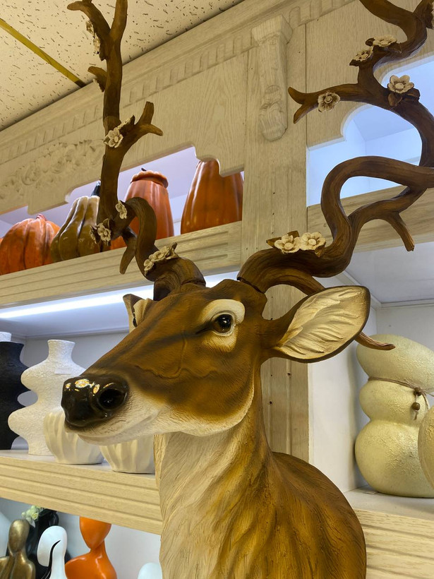 مجسمه دیواری گوزن شمالی با شکوفه روی شاخ ها کد844