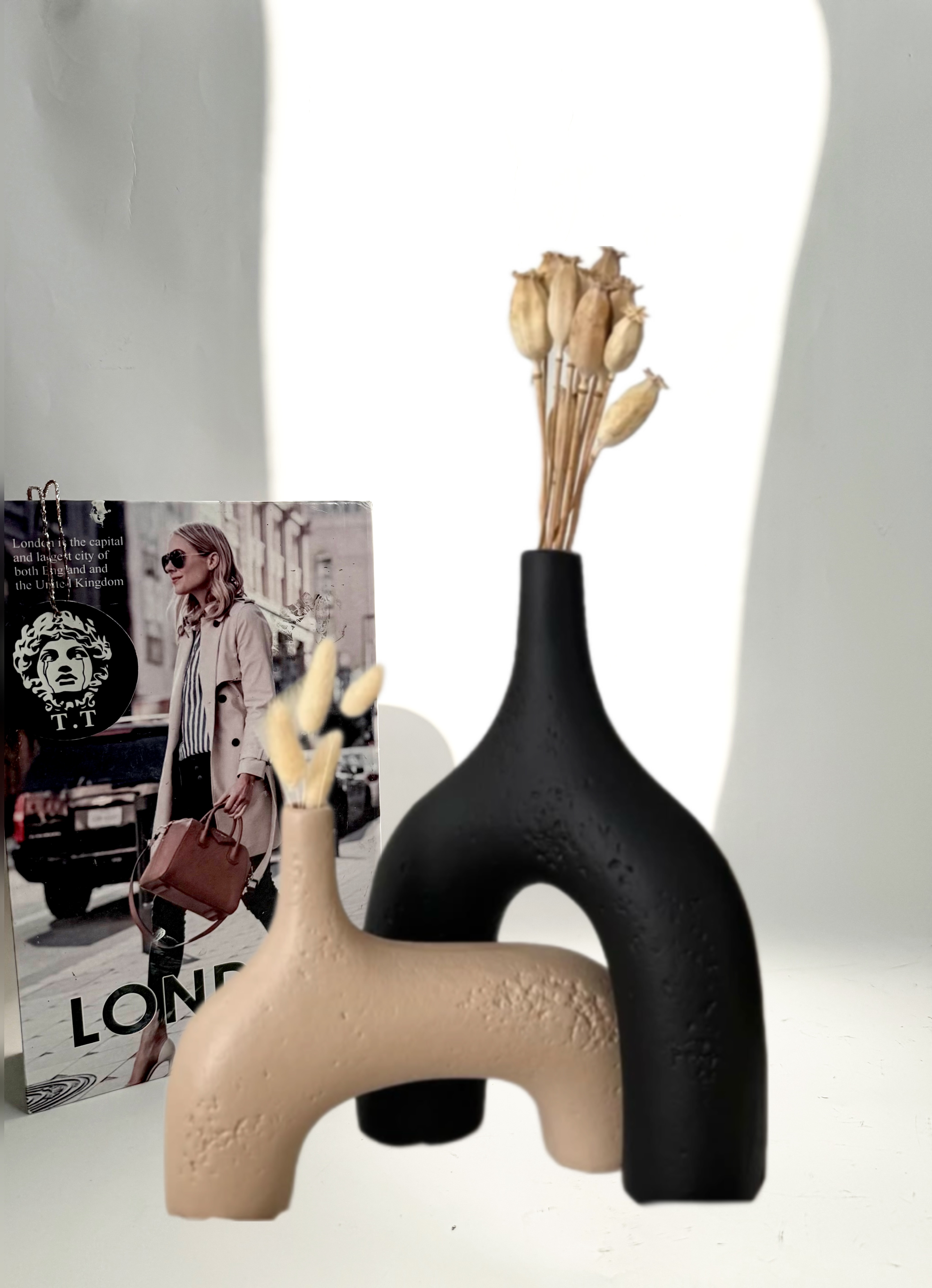 جنس و ابعاد و رنگ: پلی رزین/گلدان ٣١-٢٠سانت/مشکی نسکافه ای
