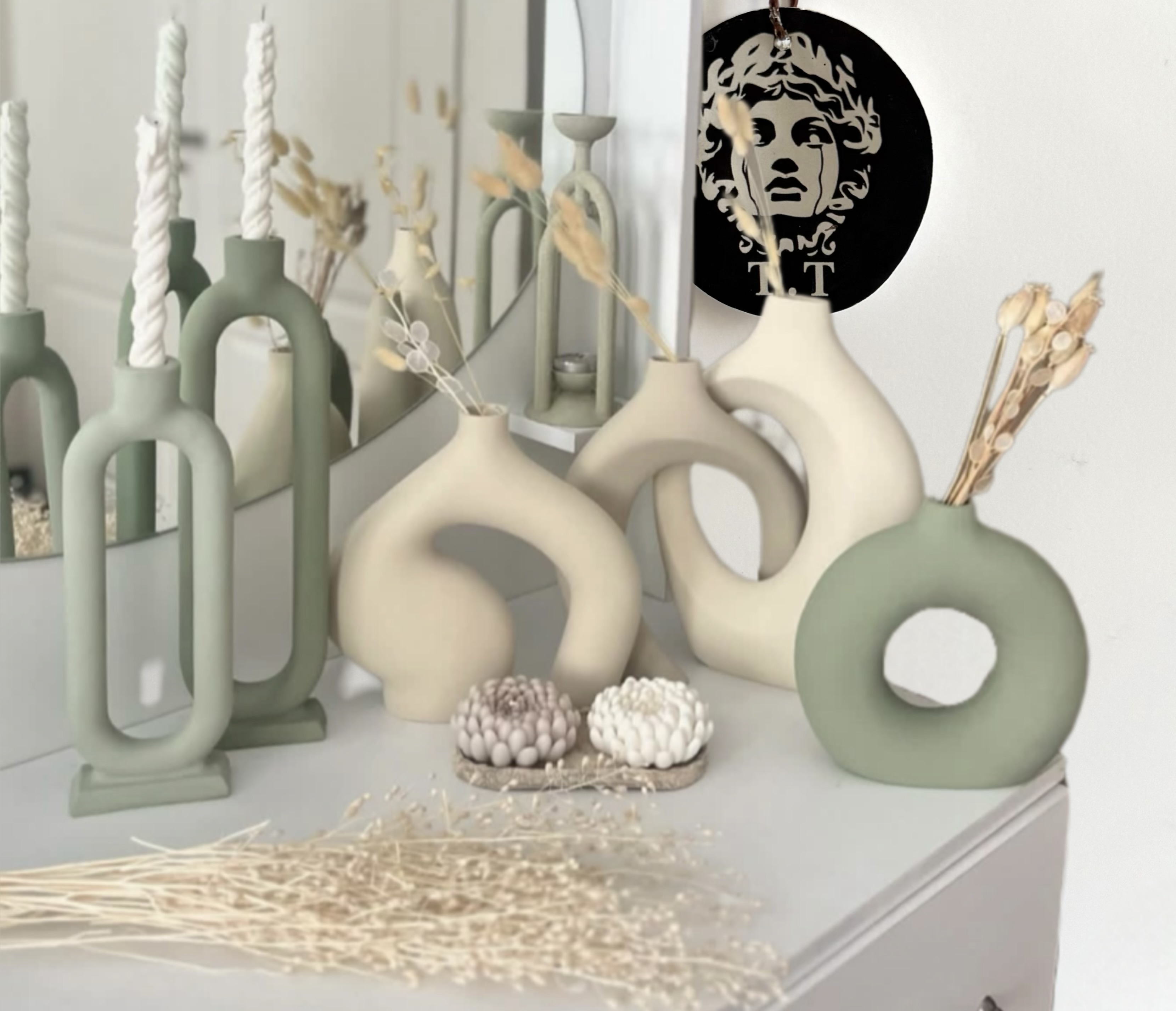 1 جفت گلدان توهم ، 1عدد گلدان ژیراف، ١عدد گلدان دونات ،1جفت شمعدان/١عدد جاشمعی فانوس
