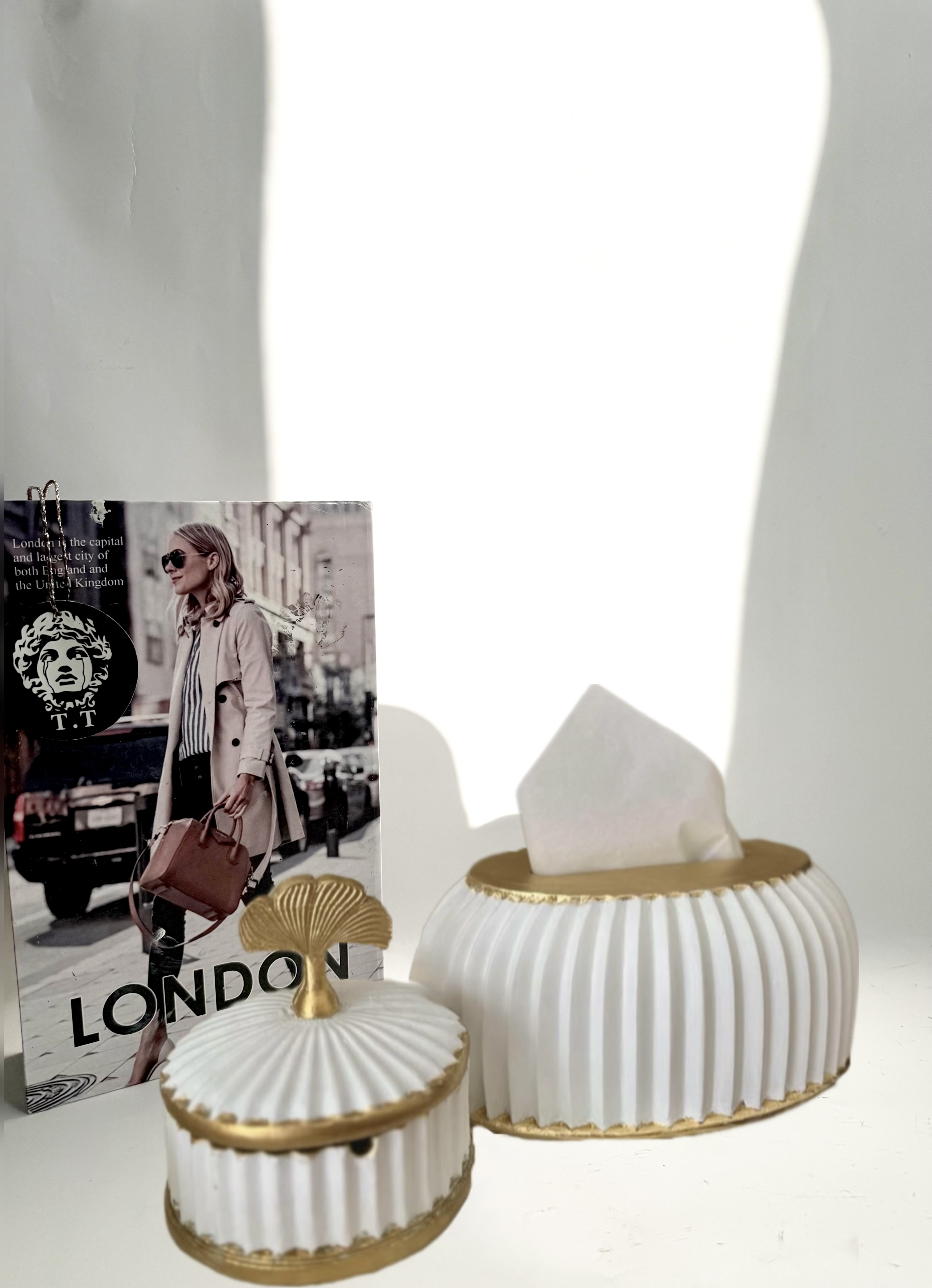 ست جادستمال کاغذی/زیرسیگاری دربداررومیزی طرح شیاردار_گشنیز کد10108
