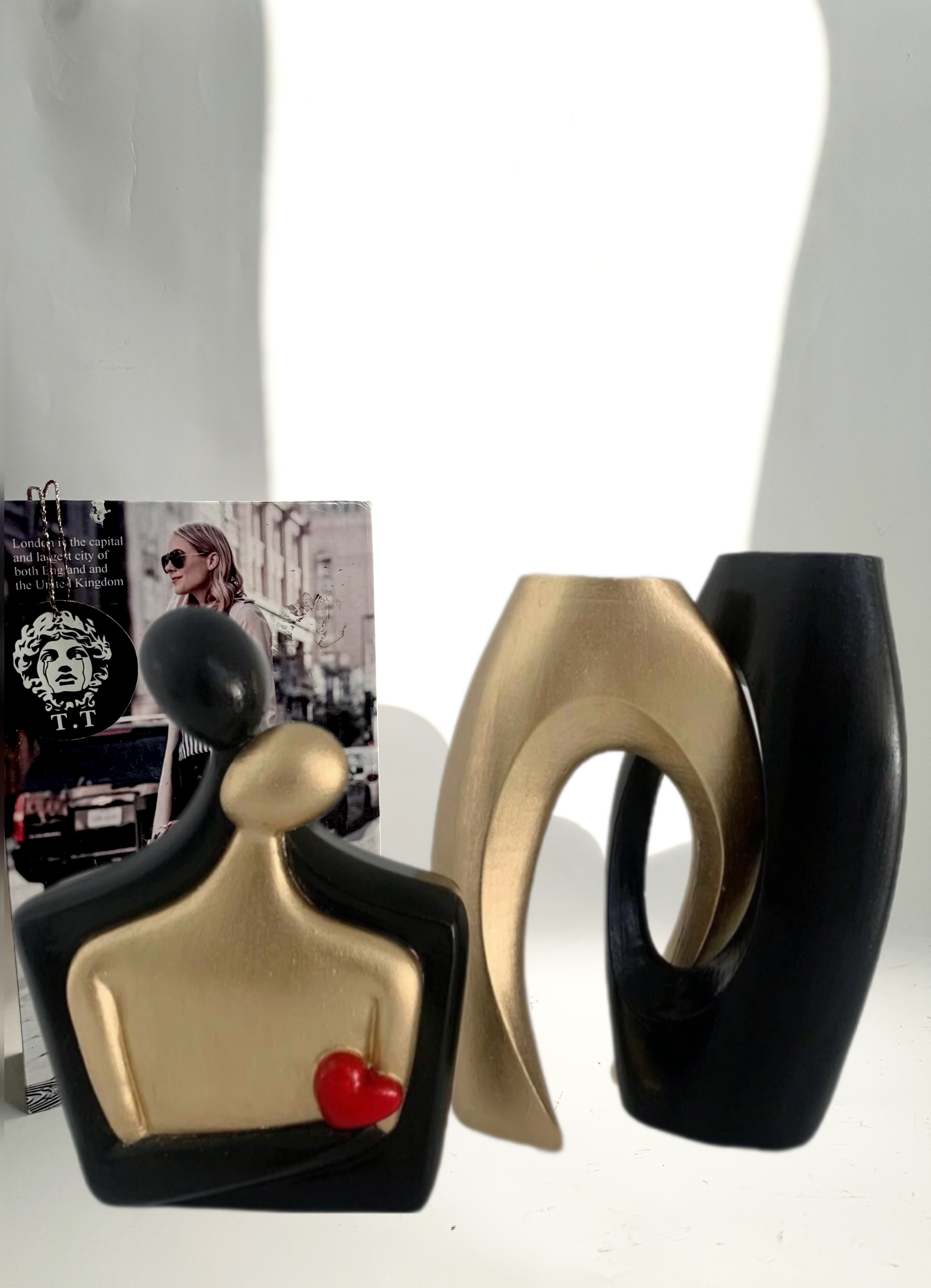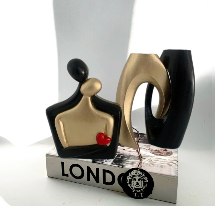 رزین/گلدان ٢٣سانت و مجسمه ٢0سانت /مشکی طلایی