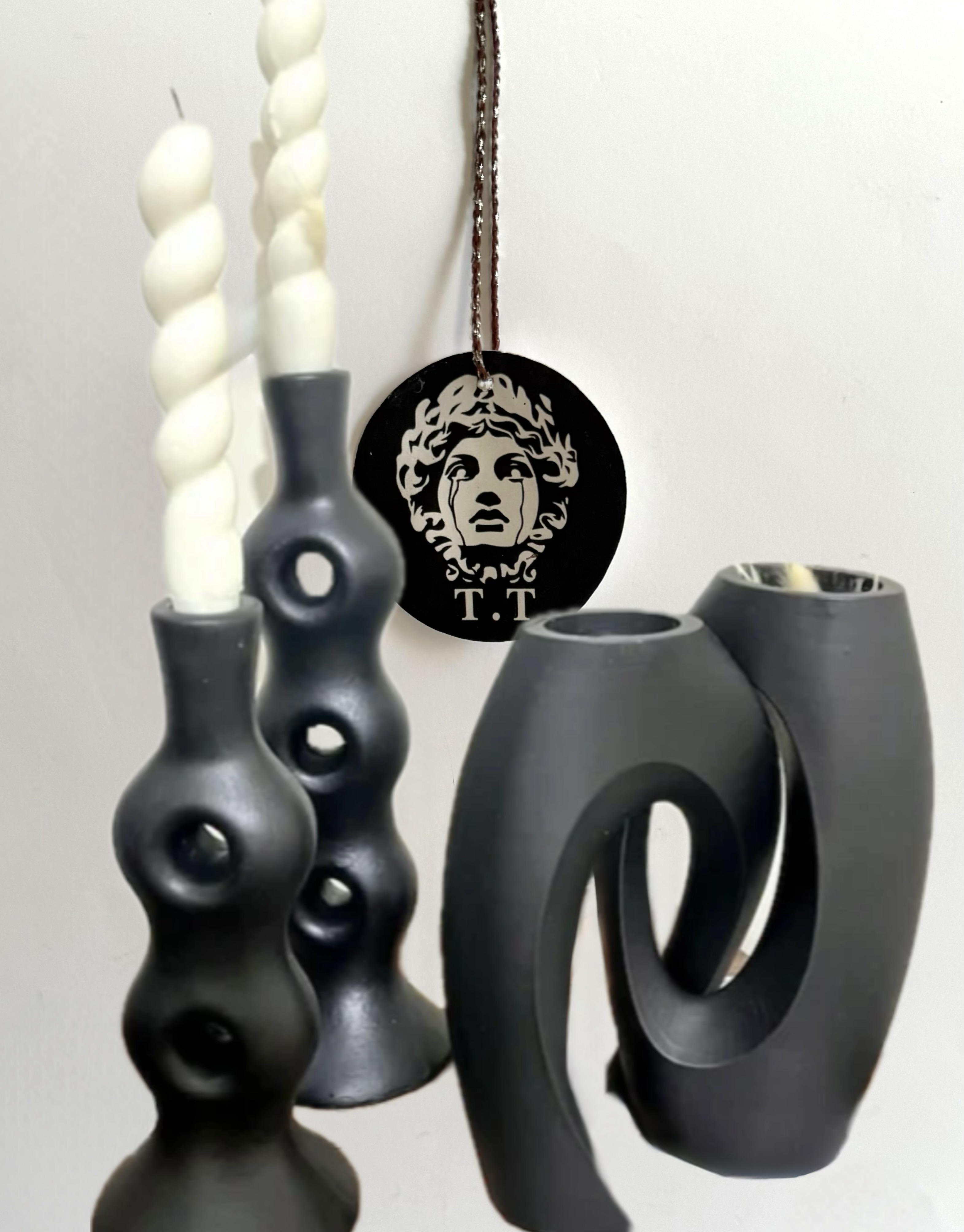 رزین/مشکی /سایزجاشمعی :ارتفاع۲۳-۲۸ سایز گلدان :۲۲-۲۱