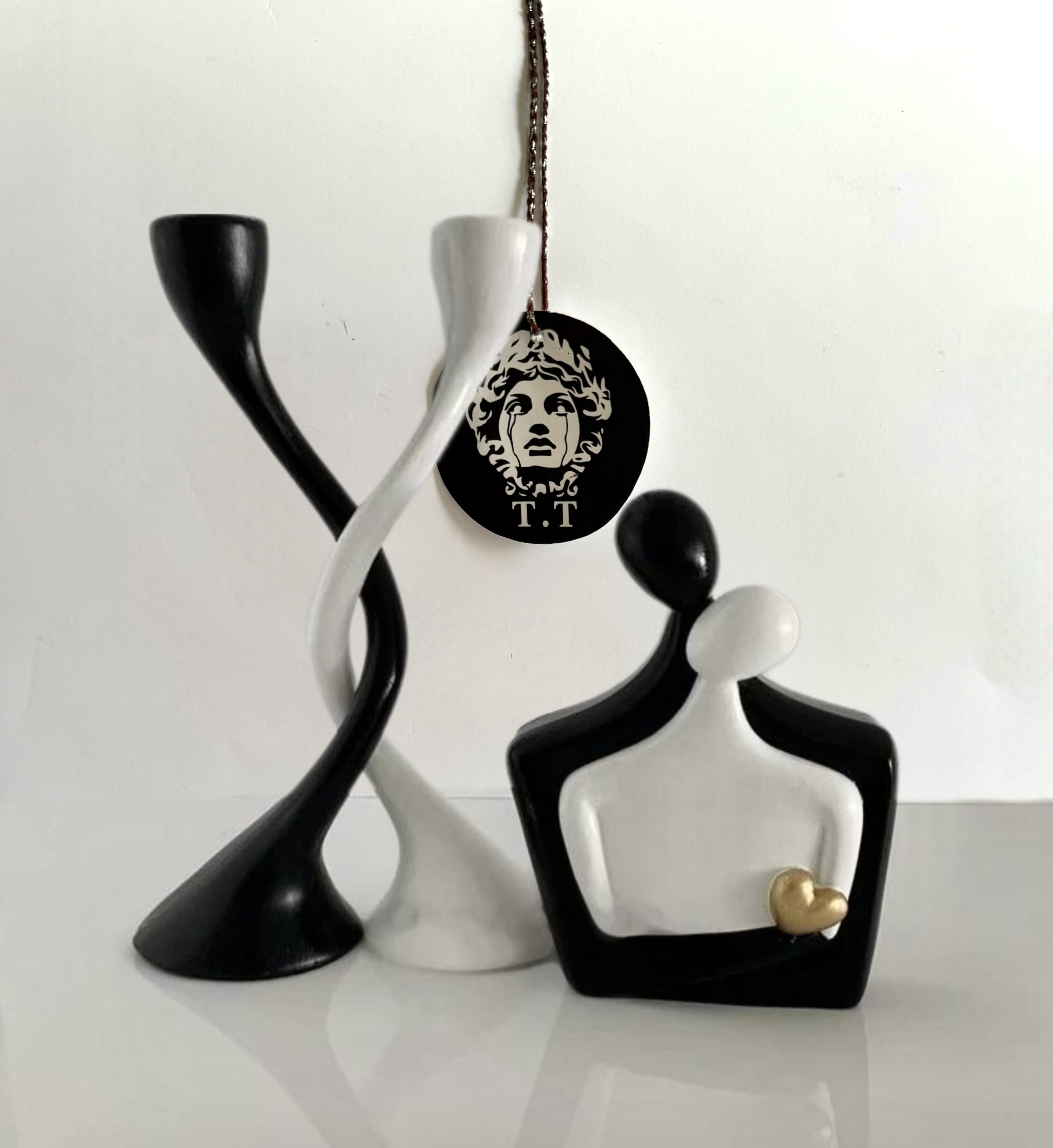رزین/مجسمه ٢٠سانت، شمعدان ٣٢سانت /مشکی سفید براق