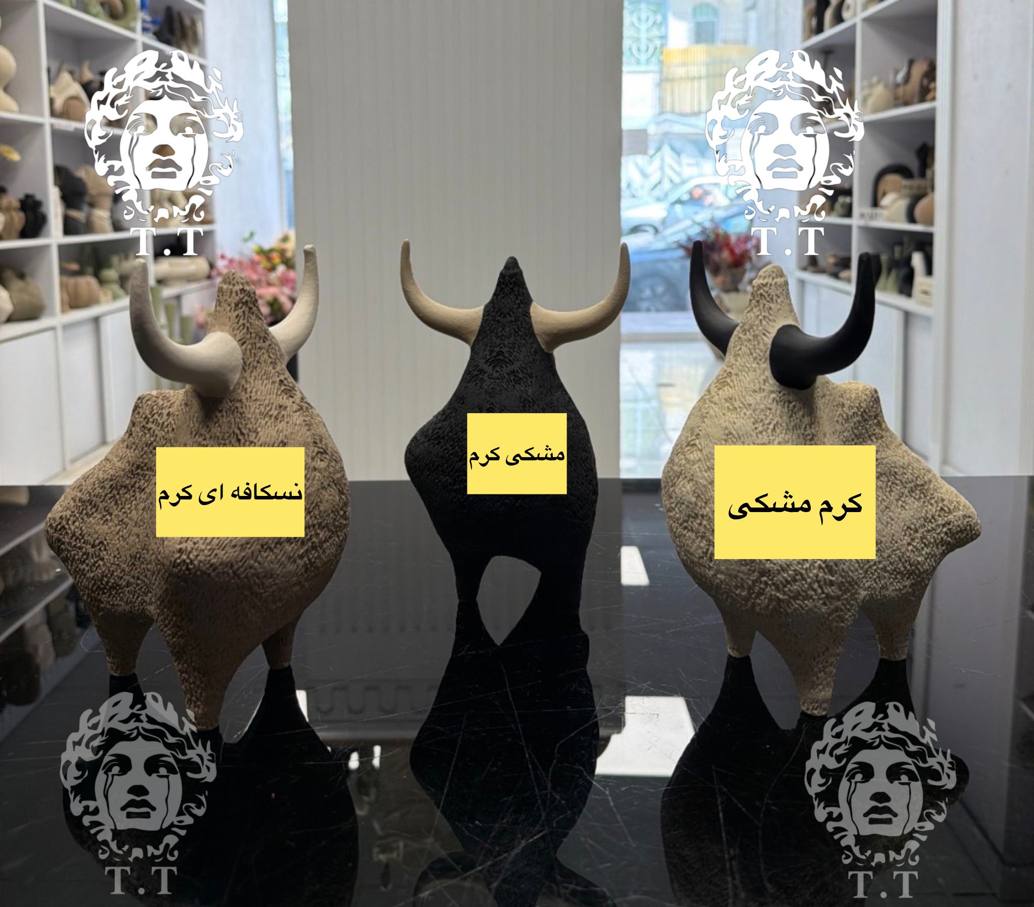 جنس و ابعاد و رنگ: پلی رزین تکسچر /١٩*١٧سانت /سفید،کرم، مشکی، نسکافه ای