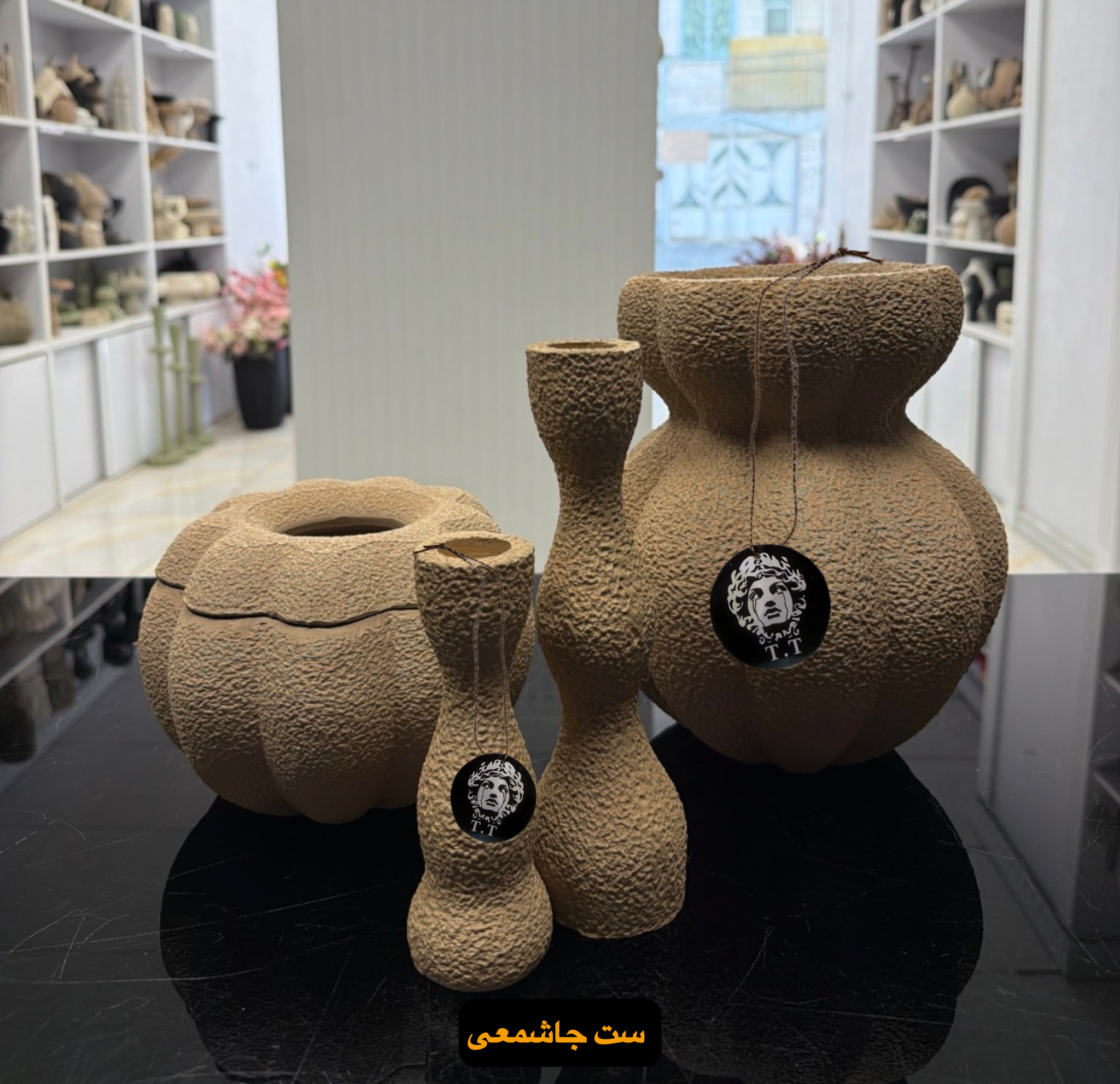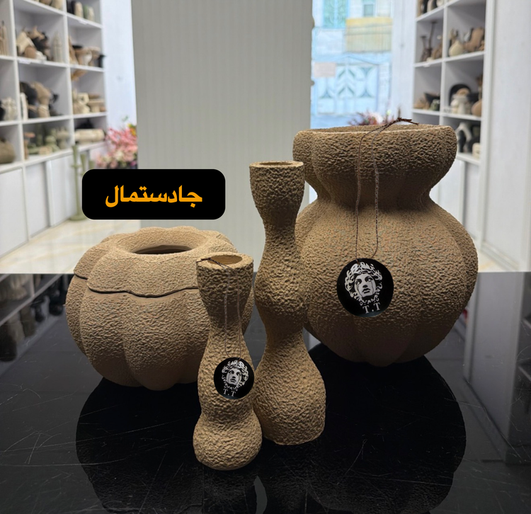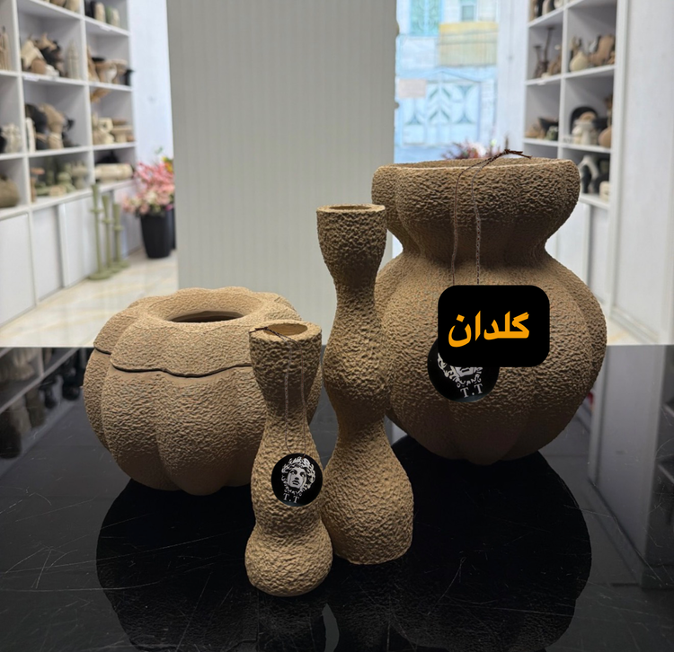 پلی رزین تکسچر /ارتفاع گلدان ٢۴سانت /ارتفاع جادستمال ١٣سانت /ارتفاع جاشمعی ١۵-٢٢سانت/رنگ نسکافه ای