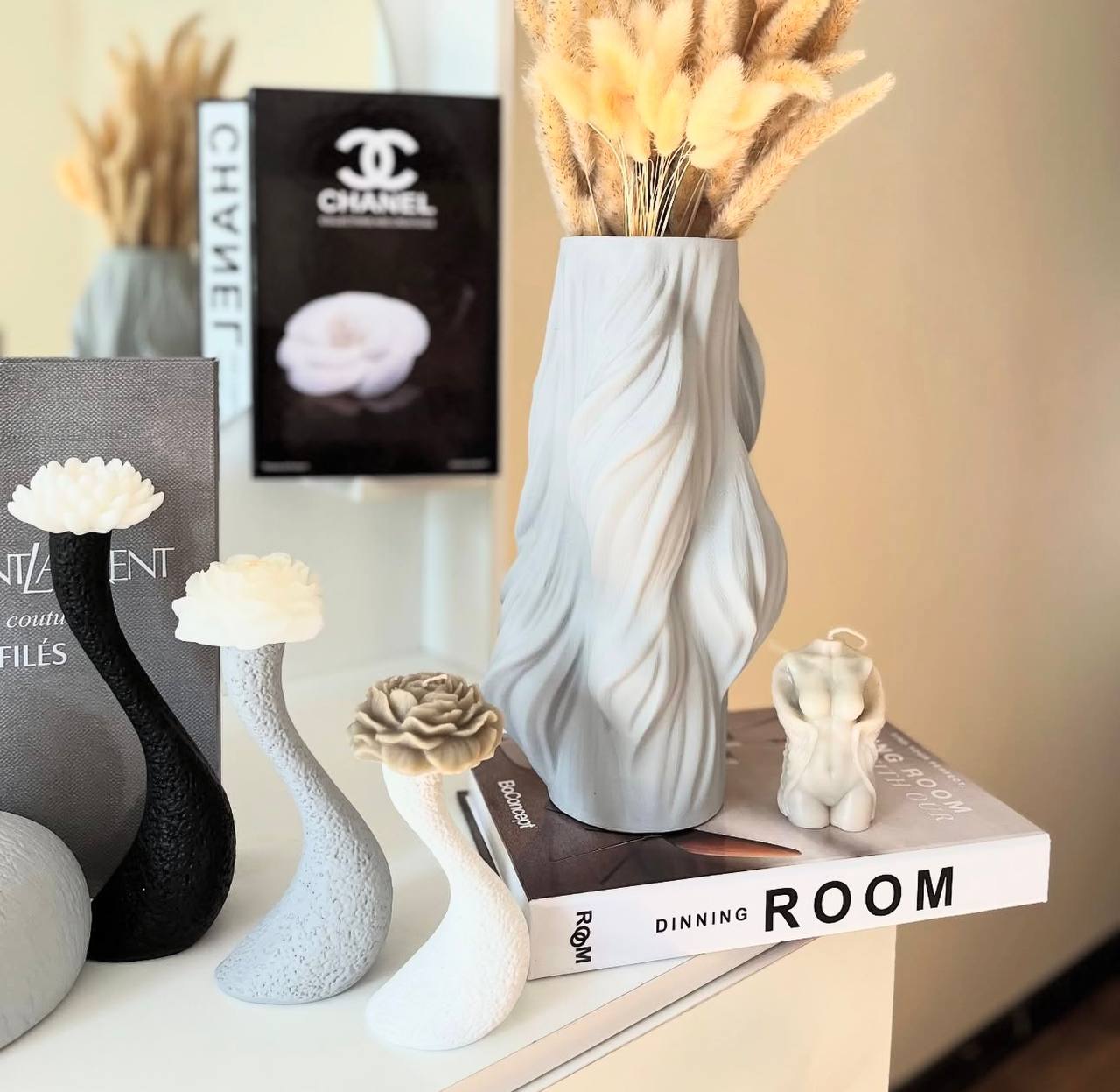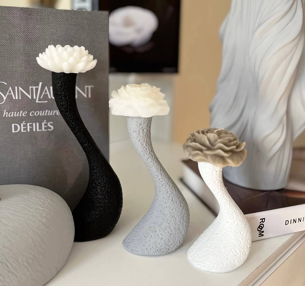 ست گلدان و جاشمعی طرح موج _جادستمال کاغذی رومیزی مدل سنگ و جاشمعی موج کد20330