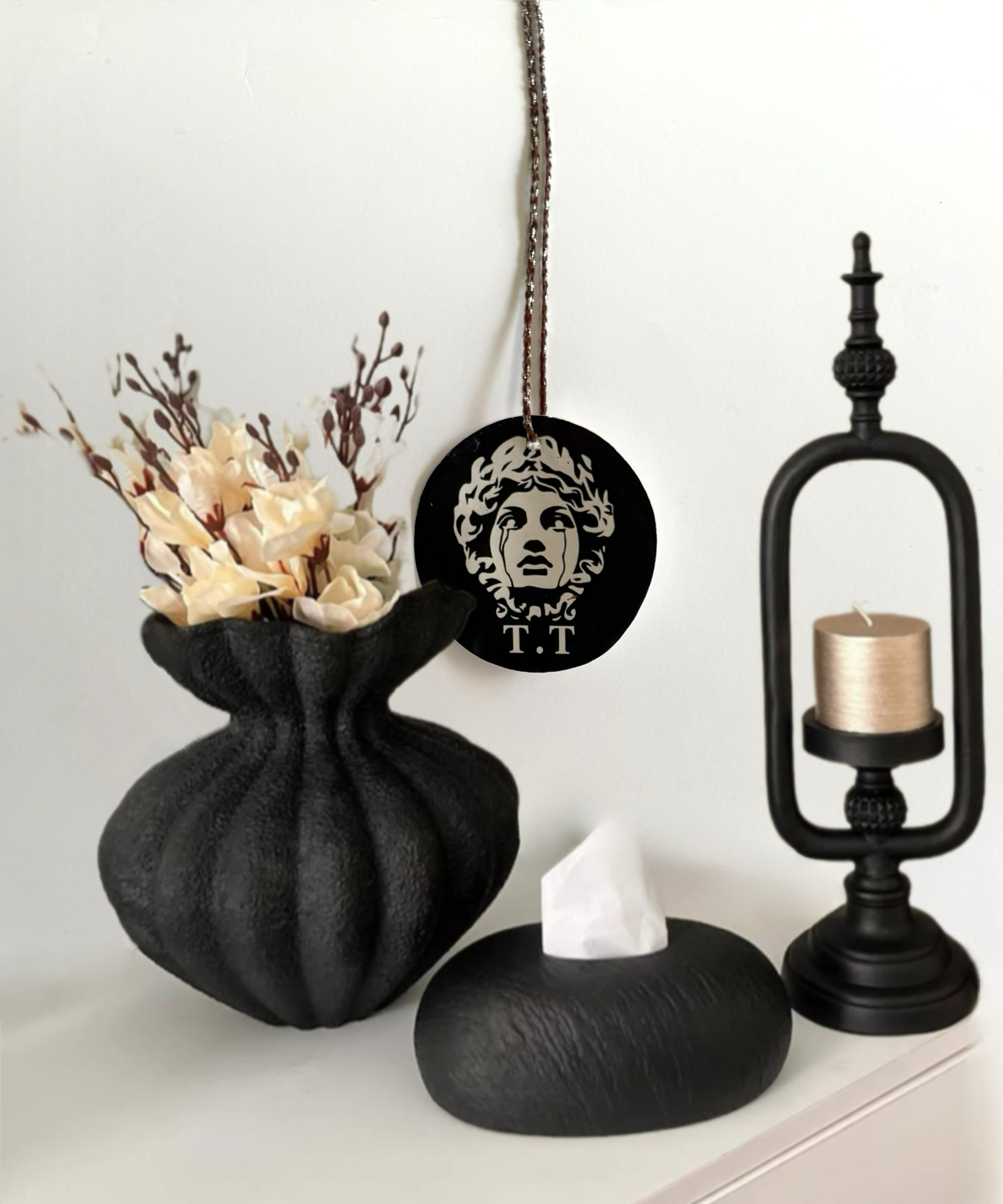 1عدد گلدان ،1عدد جاشمعی ،1عدد جادستمال، 1عدد مجسمه