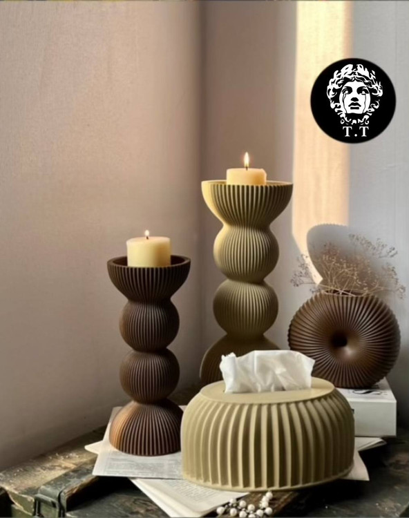 ست جاشمعی و گلدان و جادستمال کاغذی رومیزی دکوراتیو مدل شیاردار کد3007