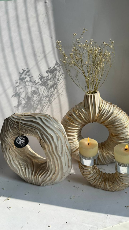 ست گلدان و جاشمعی دو شعله رومیزی مدل چروک کد۲۵۳۷