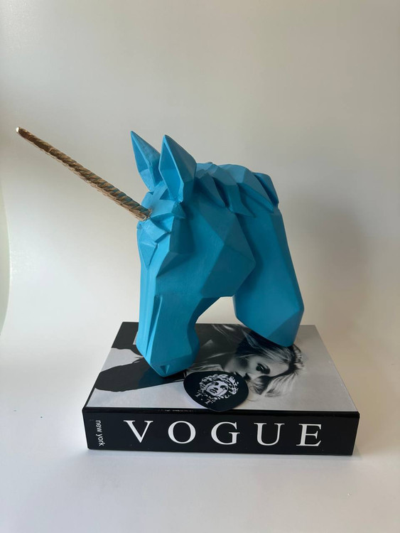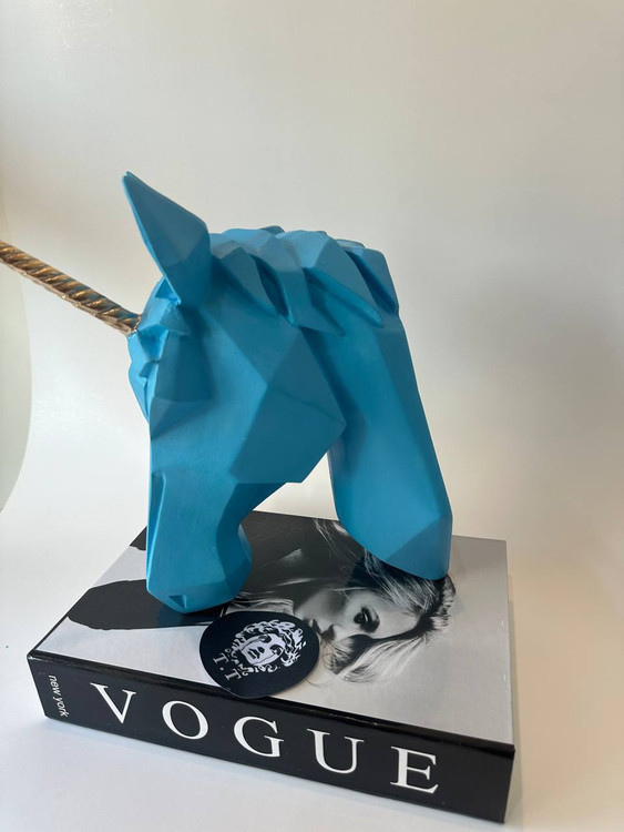 اگر به دنبال آیتمی خاص و فانتزی برای دکور فضای خود هستید، این تکشاخ آبی با طراحی ژئومتریک و شاخ طلایی، انتخابی جسورانه و منحصربهفرد خواهد بود. الهامگرفته از دنیای خیال و فانتزی، این مجسمه میتواند روحی تازه به اتاق کار، اتاق کودک یا حتی ویترین فروشگاهتان ببخشد.
