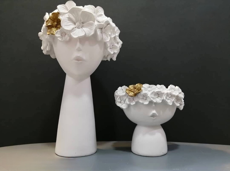 جنس و ابعاد و رنگ: پلی رزین/30-17 سانت/سفید ابری طلایی