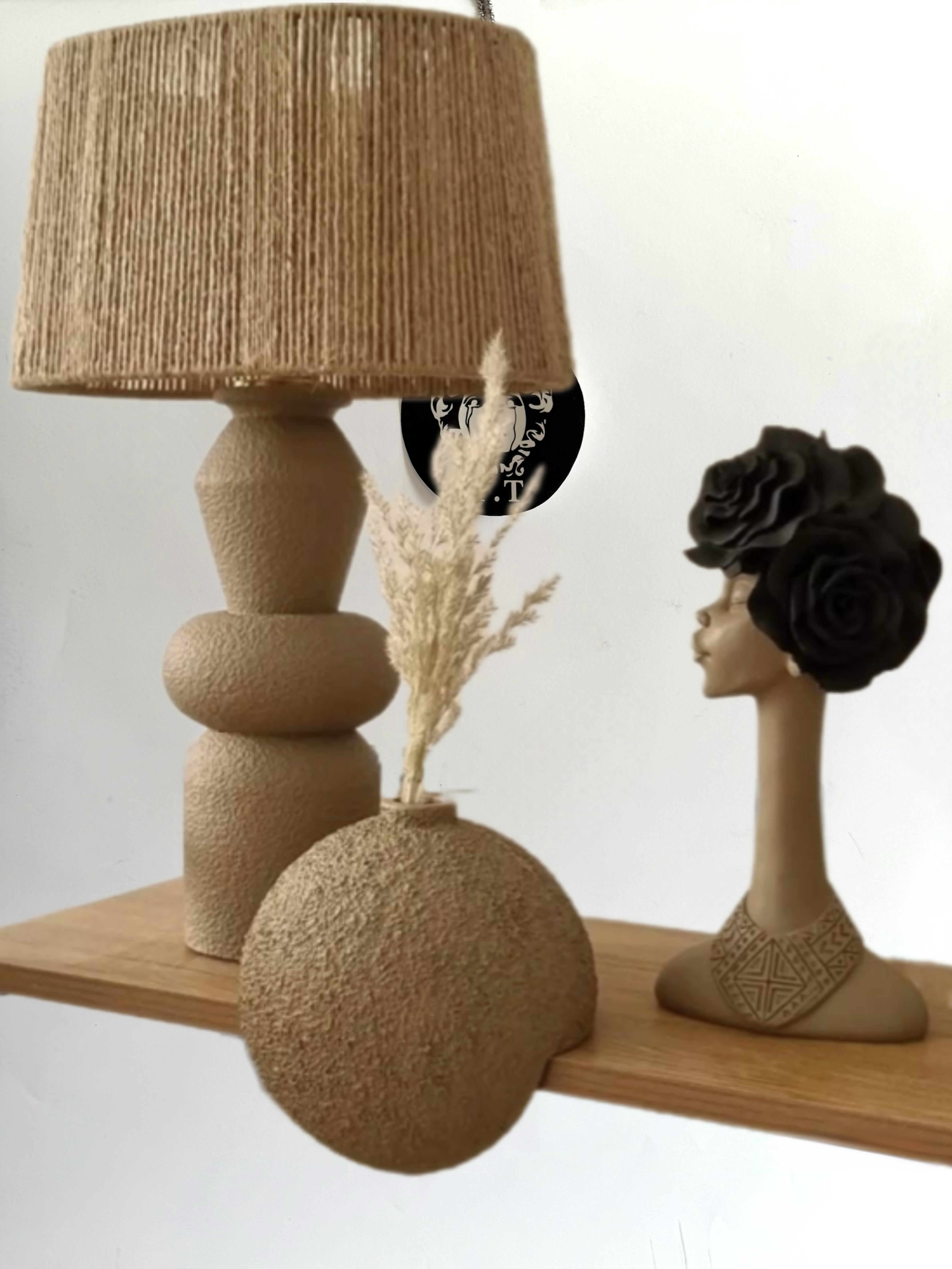 ست آباژور رومیزی مدرن مدل دفرمه و مجسمه آفریقایی و گلدان توپی لبه میزی کد۳۰۰۲