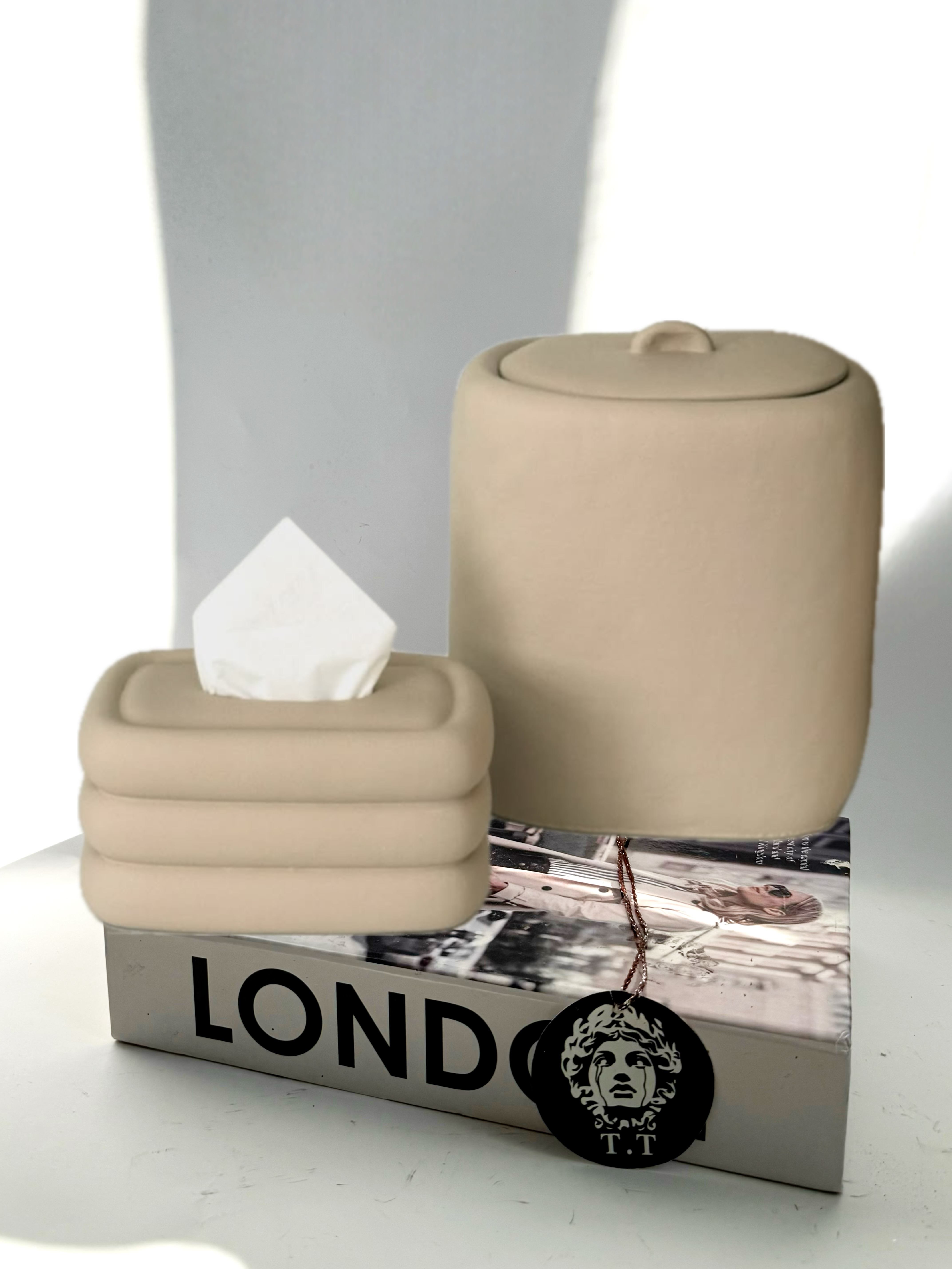 ست سطل و جا دستمال کاغذی رومیزی طرح پله کد۳۳۴۷