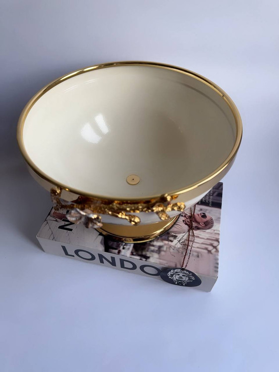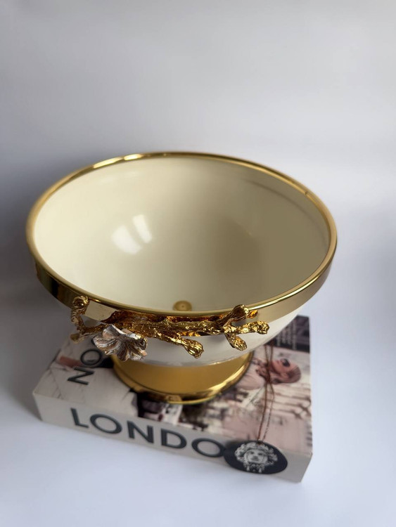 جنس فلزی آبکاری فورتیک طلایی و رنگ کرم کوره ای لعابی