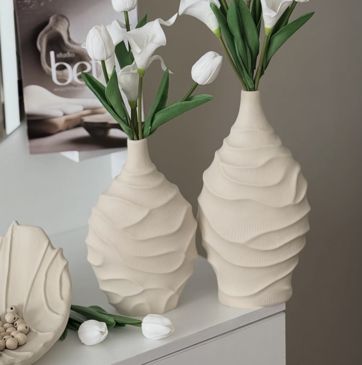 جنس و رنگ و سایز: رزین،کرم-گلدان ۱۷*۳۲-گلدان کوچک ۱۷*۲۷