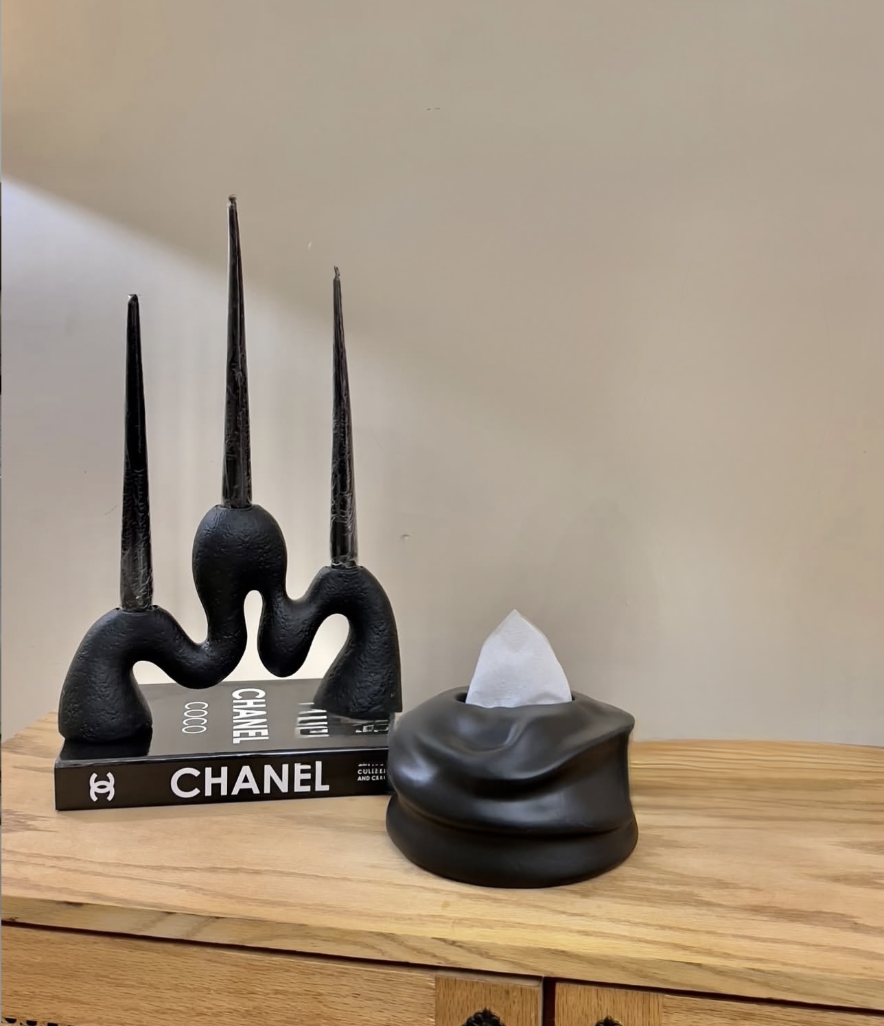 ست جاشمعی 3شعله دفرمه رومیزی و جا دستمال کاغذی رومیزی دفرمه گرد کد۳۷۳۵