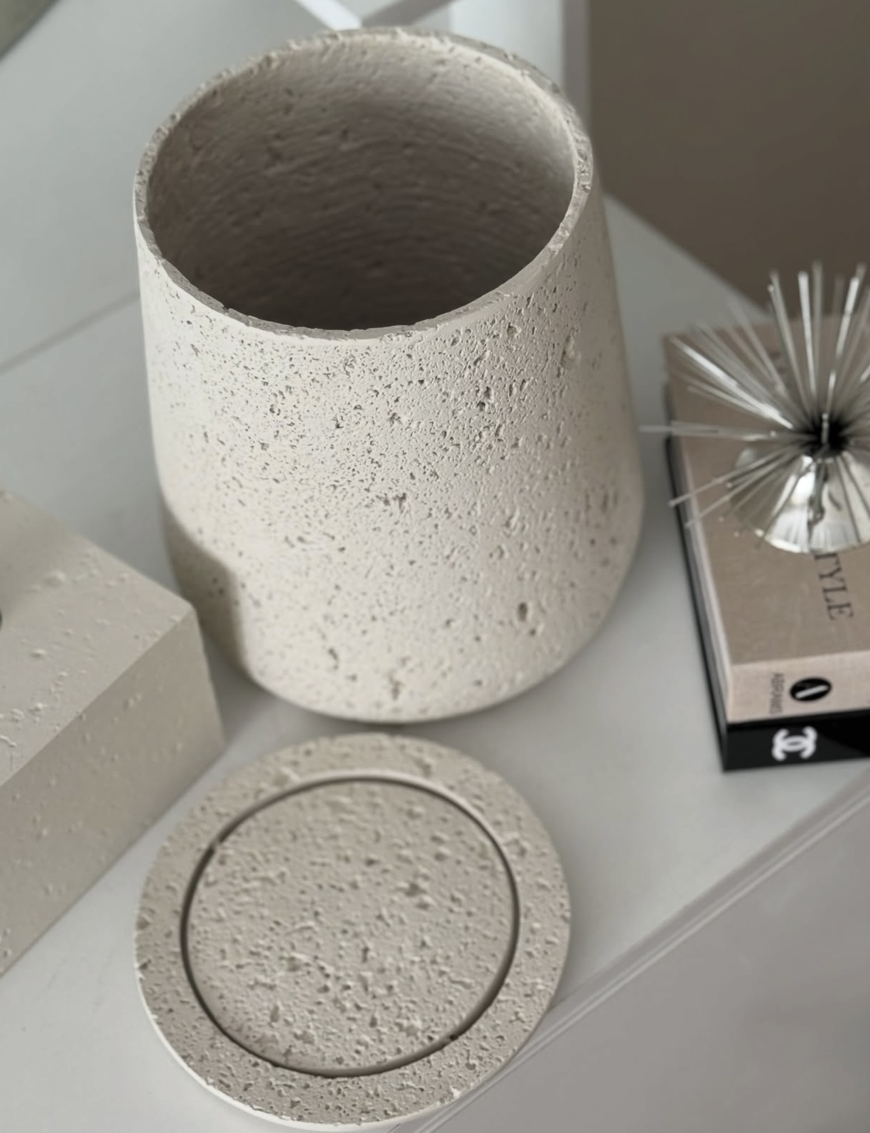 ست سطل و جا دستمال کاغذی و جا پد آرایشی مدل سنگ کد ک۳۸۷۵
