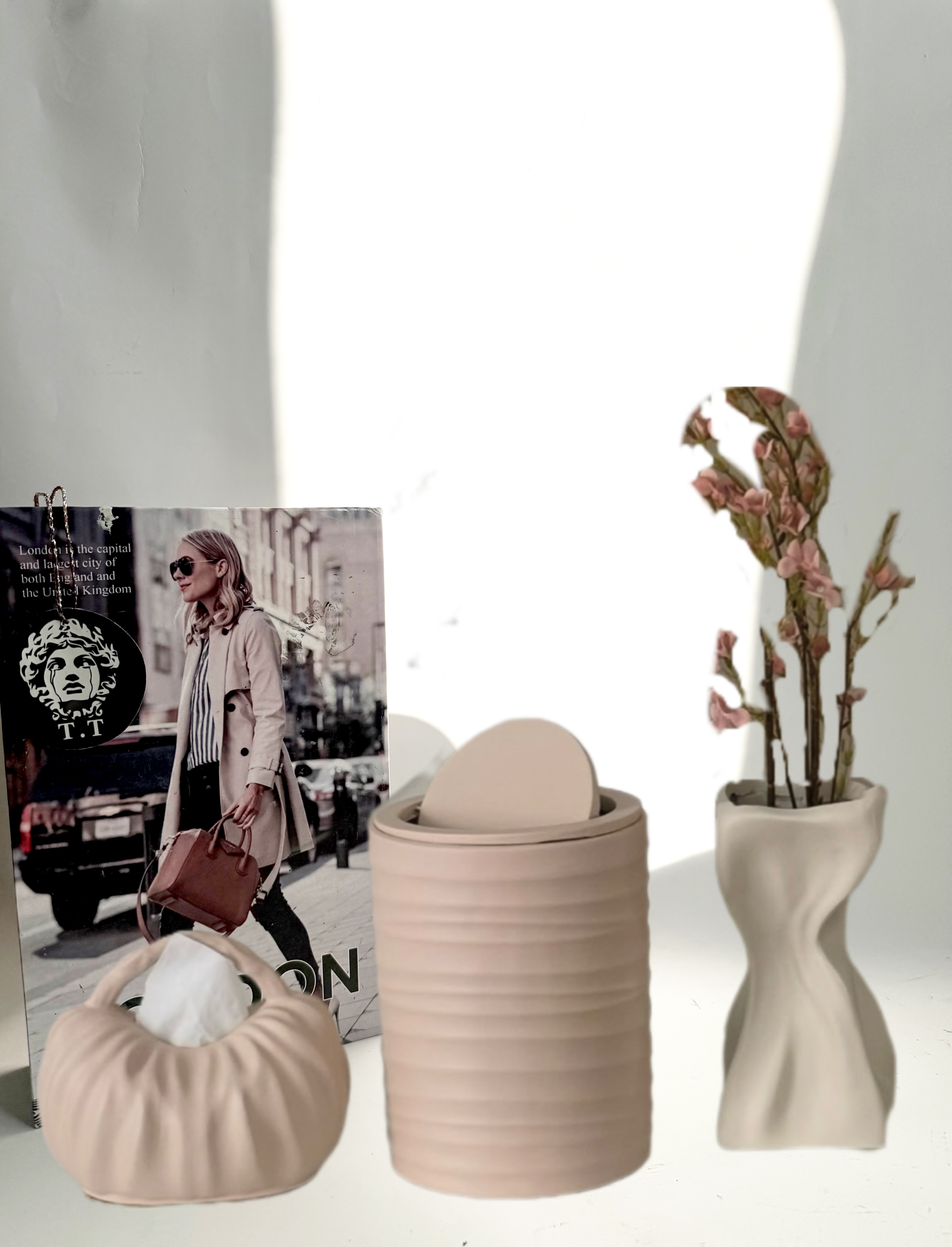 دکوری ،گلدان رومیزی ،سطل زباله پذیرایی و جادستمال کاغذی رومیزی ،هدیه