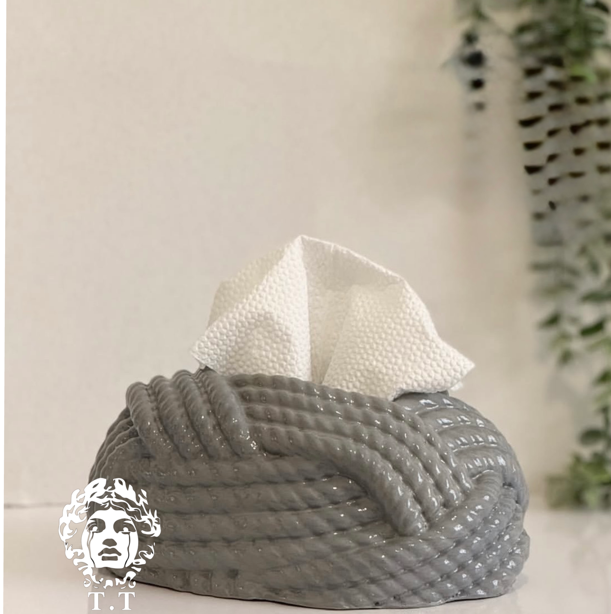 ست جاشمعی رومیزی مدل بیضی حلقه و جادستمال کاغذی رومیزی مدل گره طناب کد۴۰۴۰