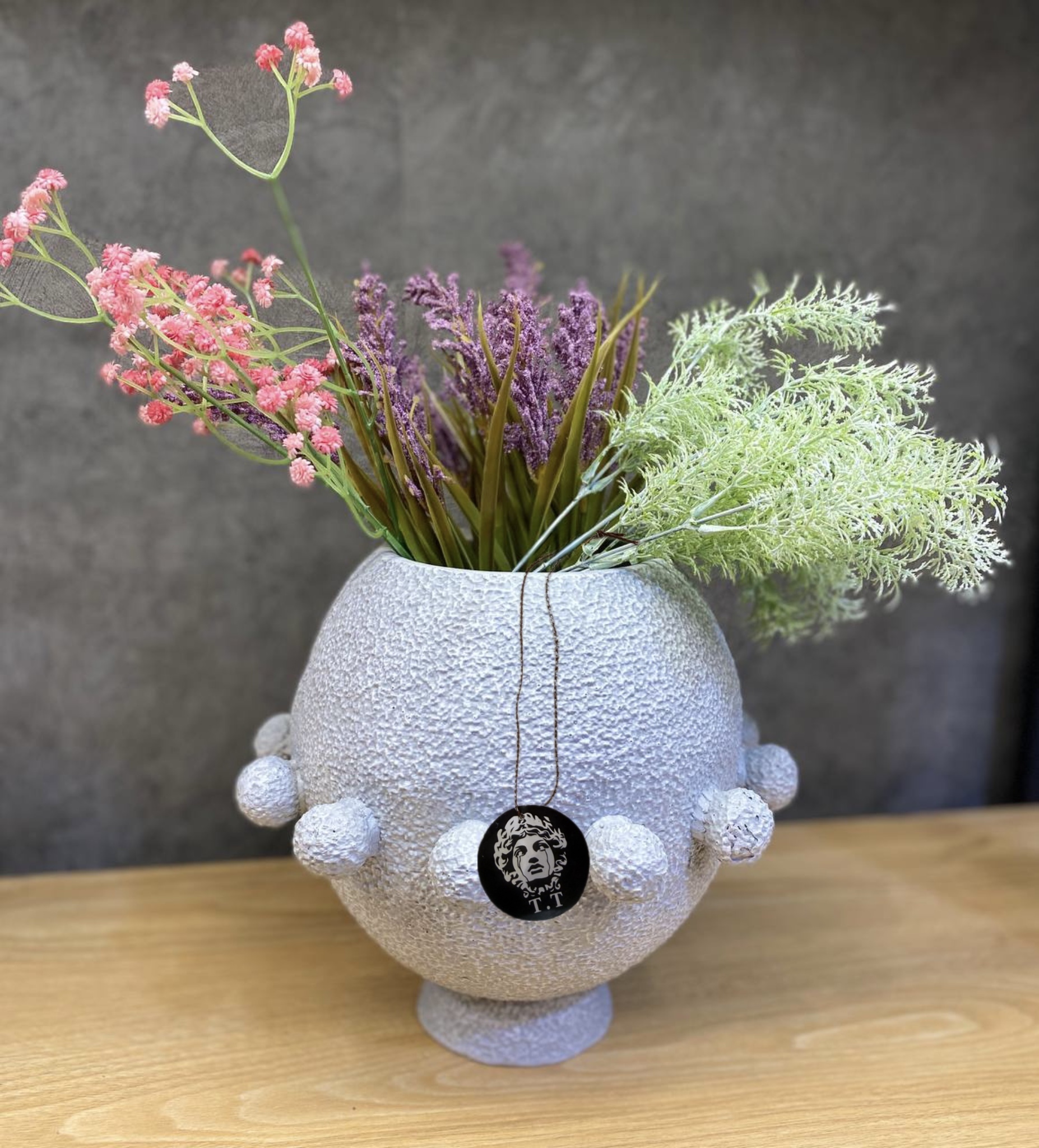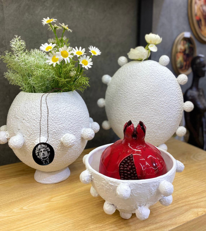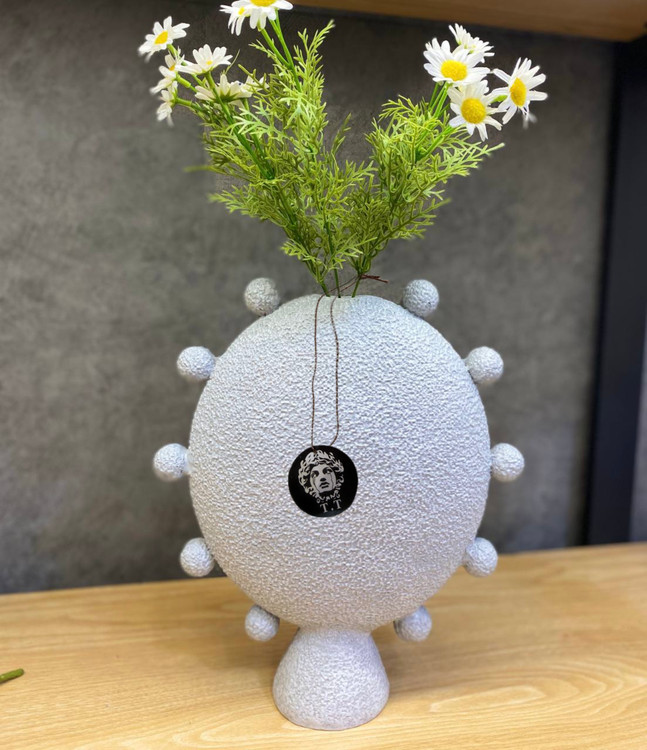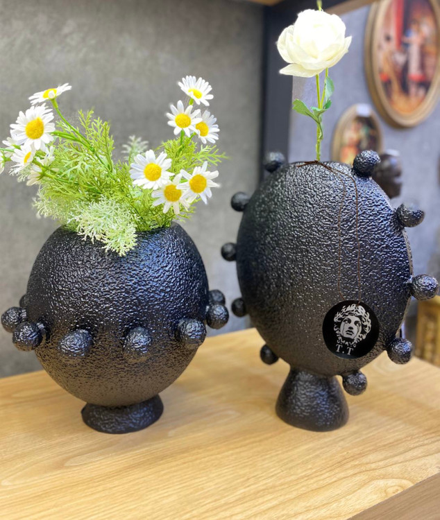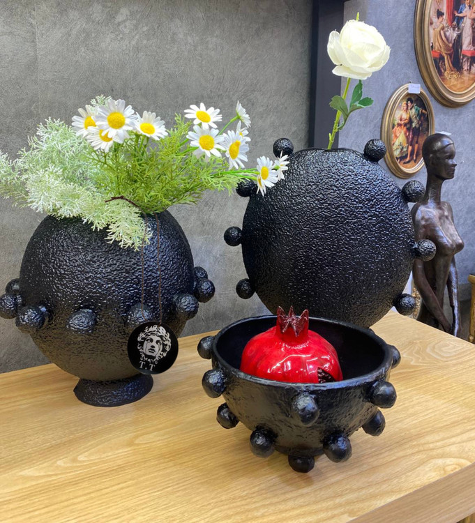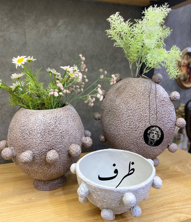 جنس و سایز: رزین تکسچر /گلدان ها ۲۰-۳۰سانت/قطر ظرف۱۹سانت