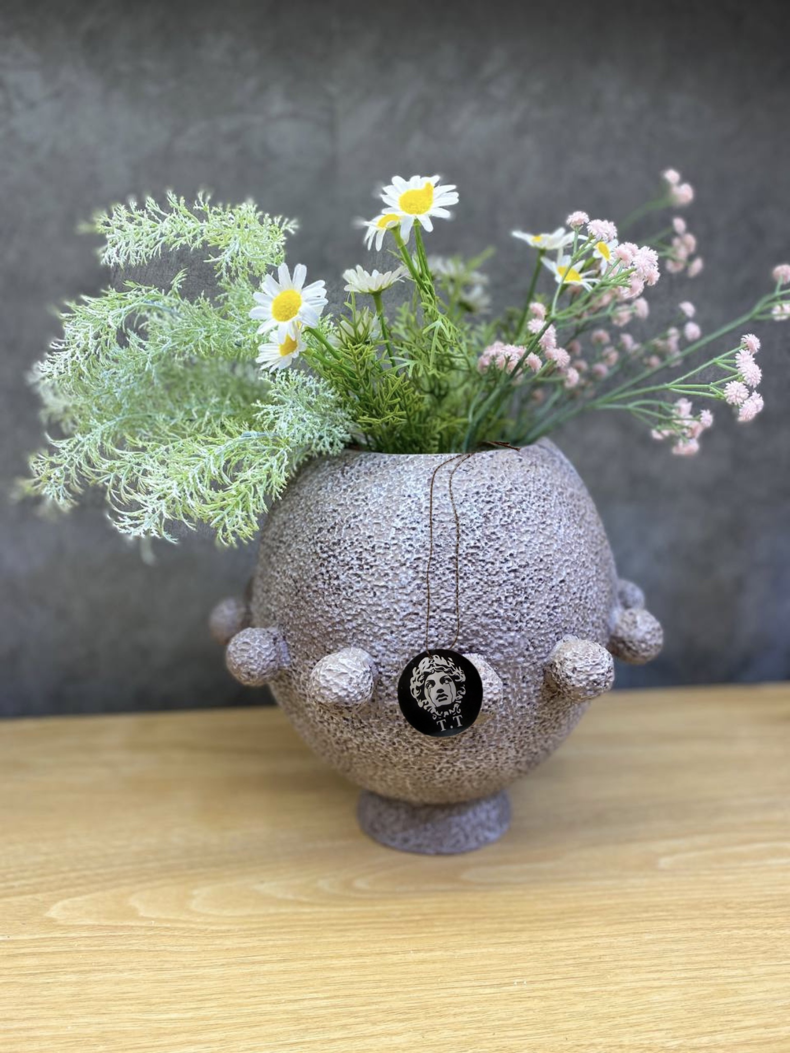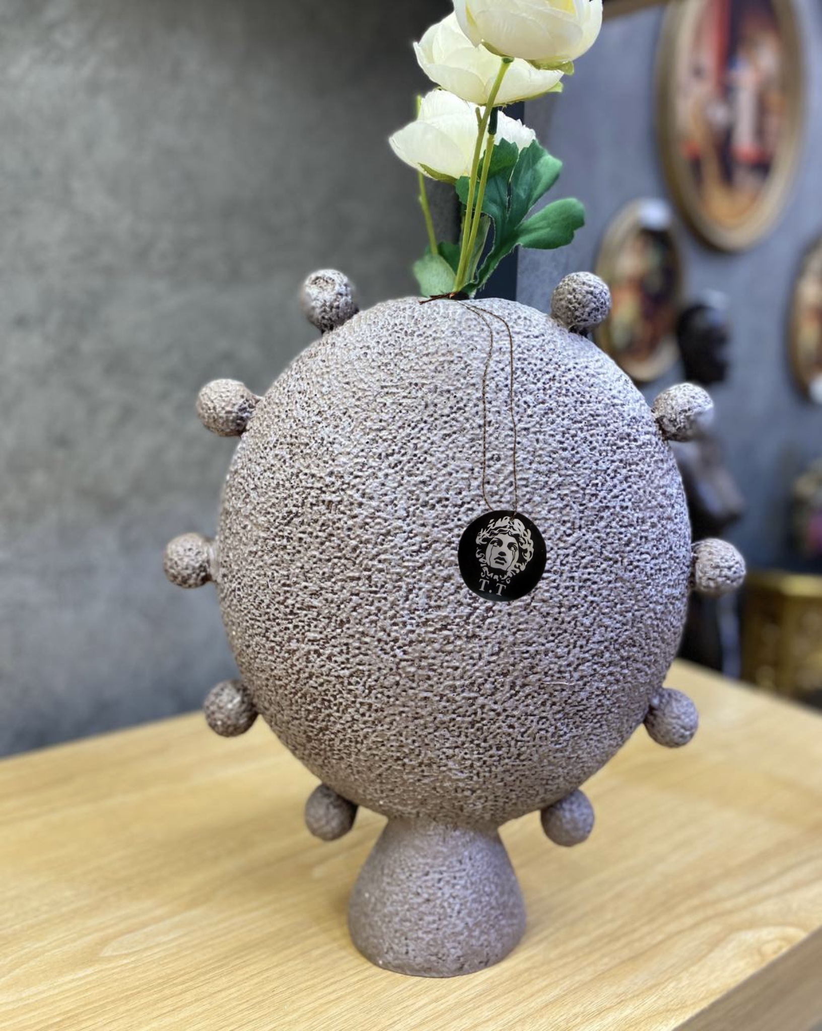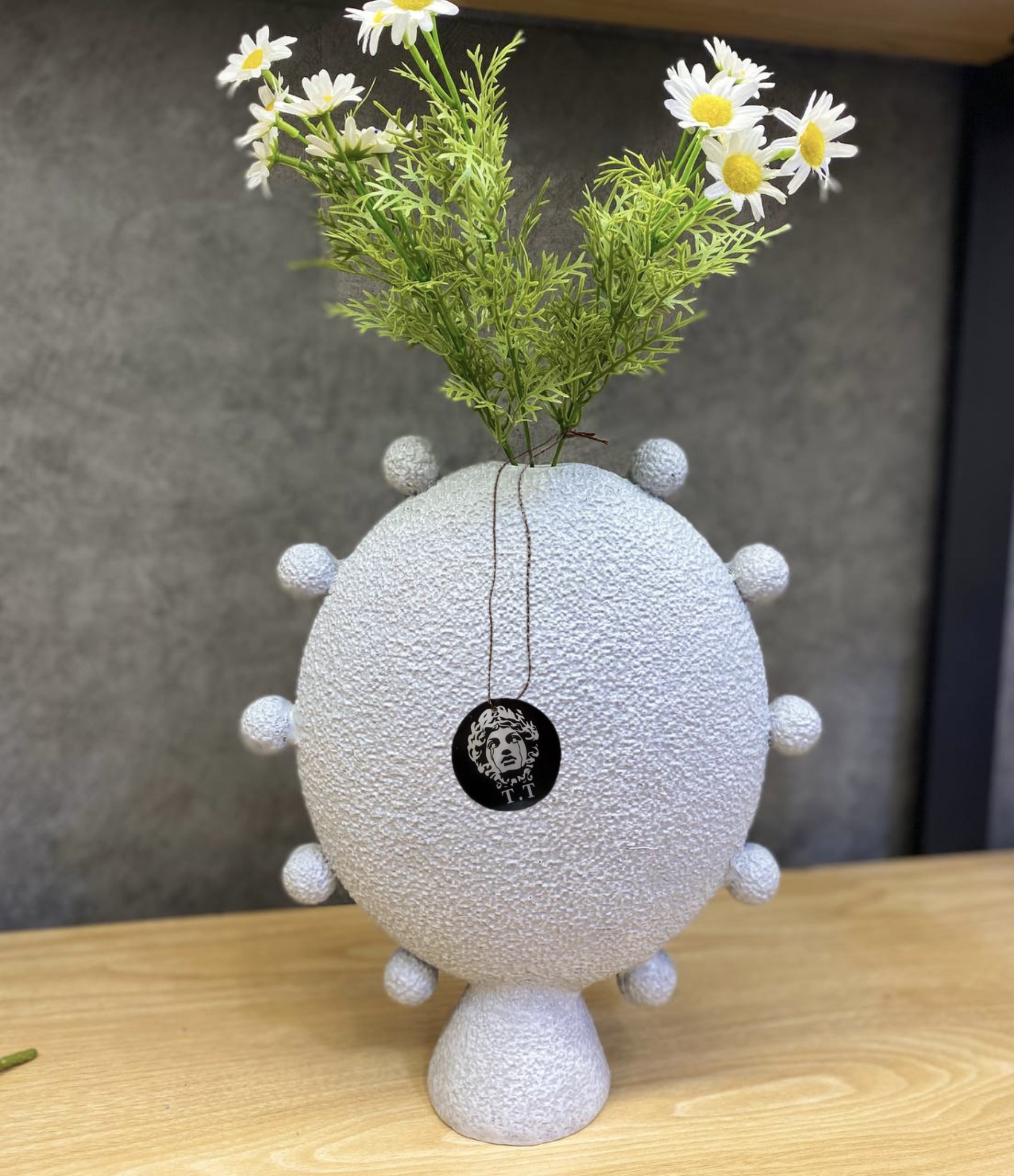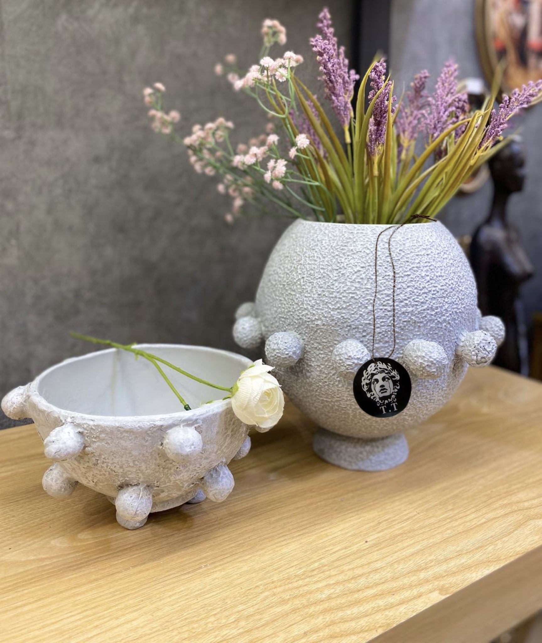 جنس و سایز: رزین تکسچر /گلدان ها ۲۰-۳۰سانت/قطر ظرف۱۹سانت