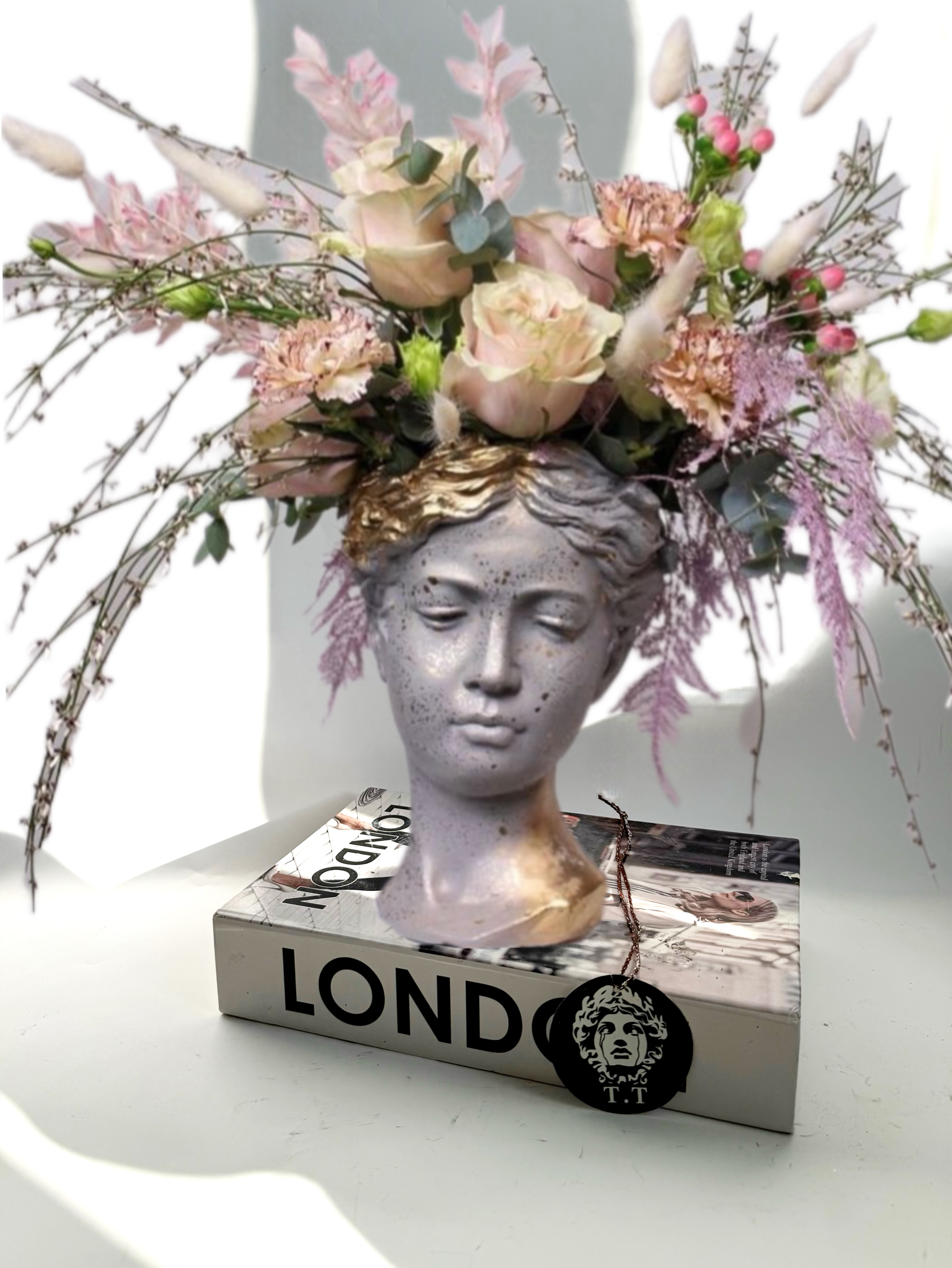 دکوری، گلدان رومیزی قابلیت کاشت گل طبیعی ریز مانند کاکتوس و گلهای تزیینی، جاکارد و چنگال قاشق میباشد.